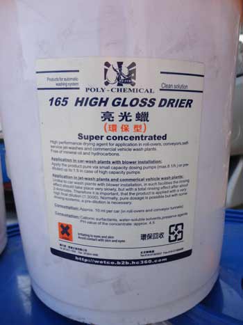 適用于各種配備自動(dòng)上光的洗車設(shè)備。干燥上光蠟?zāi)軌蜓杆俑接谲嚤?,形成疏水層,使車體表面的水迅速變成水珠滑離車體,成倍增加風(fēng)干或擦干效果。同時(shí)在車體表面留下一層光亮的保護(hù)膜,減少空氣中的酸雨等物質(zhì)對(duì)漆面的腐蝕。